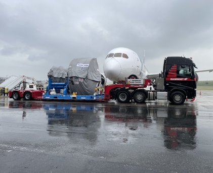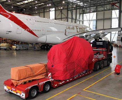 Het vervoer van vliegtuigmotoren en andere vliegtuigonderdelen is delicaat werk en vraagt speciale skills, ruime ervaring en een gedegen werkvoorbereiding.